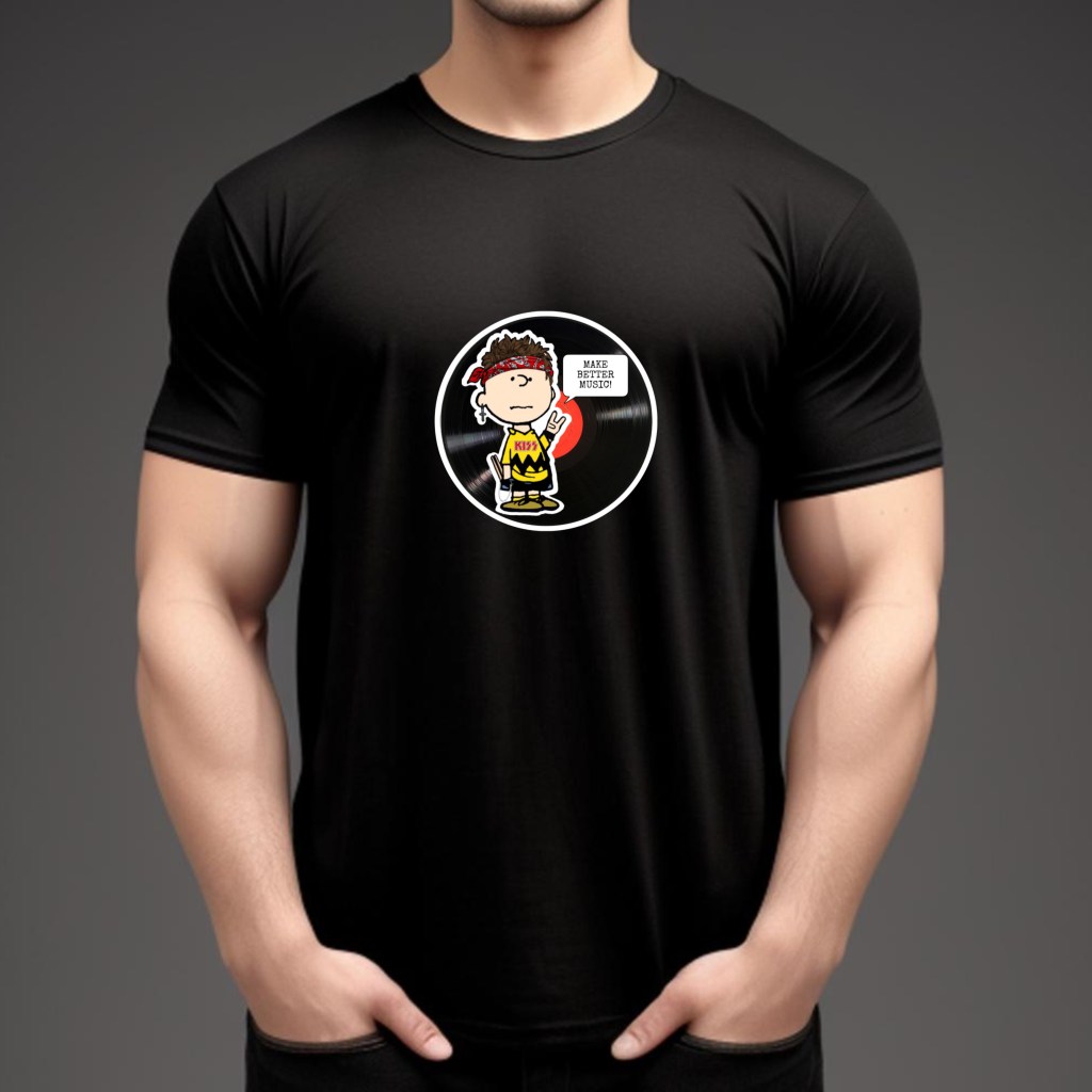 Crank up the volume on style and substance with an exclusive Iconic Tee Company design that fuses classic rock rebellion with a bold call to action! Crafted from 100% high-quality cotton, this one-of-a-kind shirt features a full-color graphic of an all-American rock warrior—drumsticks in his back pocket, devil’s horns raised high—set against a retro vinyl backdrop. He challenges today’s musicians to rise above the noise and fight back against the flood of forgettable tunes flooding the airwaves. His request? Loud and clear: “Make Music Better.” $25